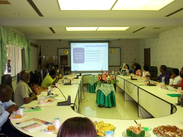 วันที่ 5 มิถุนายน 2556 ศูนย์เทคโนโลยีชีวภาพและความปลอดภัยทางชีวภาพ ร่วมกับ The Association for Strengthening Agricultural Research in Eastern and Central Africa (ASARECA) นำผู้บริหาร นักวิชาการ และผู้ประกอบการด้านเพาะเลี้ยงเนื้อเยื่อพืชชาวต่างชาติ จาก 9 ประเทศ จำนวน 16 คน ศึกษาดูงานหน่วยเพาะเลี้ยงเนื้อเยื่อพืช ศูนย์ปฏิบัติการวิจัยและเรือนปลูกพืชทดลอง