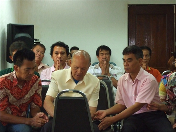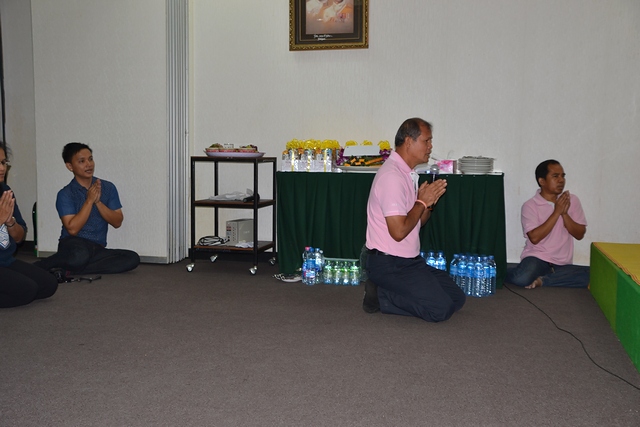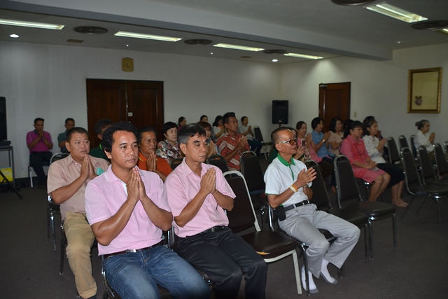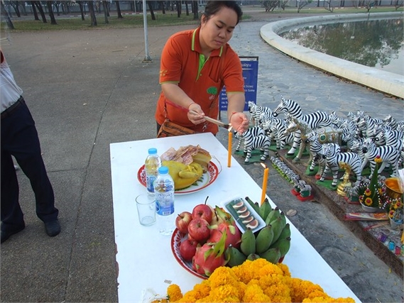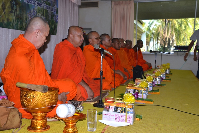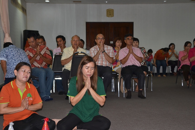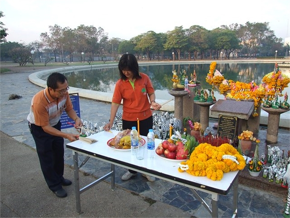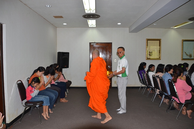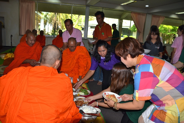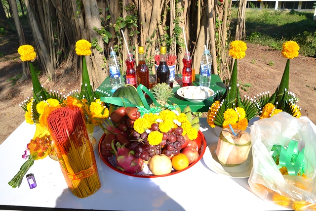 และศาลพระภูมิเจ้าที่ พระสงฆ์เจริญพระพุทธมนต์ และฉันภัตตาหารเพล รับประทานอาหารกลางวันร่วมกัน
