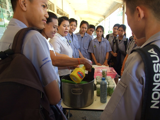 วันที่ 12 มิถุนายน 2558 ศูนย์ปฏิบัติการวิจัยและเรือนปลูกพืชทดลอง คณะเกษตร กำแพงแสน จัดฝึกอบรม โครงการสร้างเสริมทักษะวิทยาศาสตร์ ให้กับนักเรียนระดับชั้นมัธยมศึกษาปีที่ 4, 5, 6 โรงเรียนหนองเสือวิทยาคม อ.หนองเสือ จ.ปทุมธานี รวมจำนวน 118 คน หัวข้อการฝึกอบรม ได้แก่ การเขียนโครงงานวิทยาศาสตร์, การผลิตวัสดุปลูกและการปลูกต้นไม้, เทคนิคการเพาะเลี้ยงเนื้อเยื่อพืช, เครื่องกลและแมคคาทรอนิกส์เกษตร, การเข้าศึกษาต่อคณะเกษตร กำแพงแสน, ศึกษาดูงานสวนกล้วยไม้ กำแพงแสน |