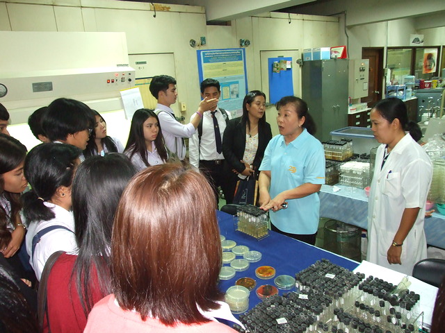 ชั้นปีที่ 2 และ 4 รวมจำนวน 38 คน ศึกษาดูงาน การใช้กล้องจุลทรรศน์อิเล็กตรอน การเพาะเลี้ยงเนื้อเยื่อพืช