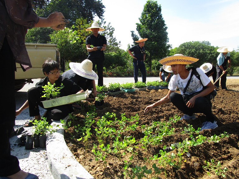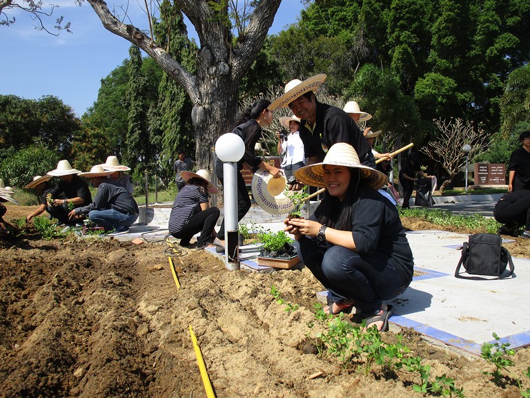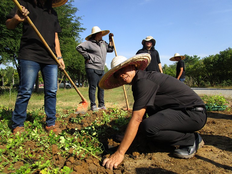 ปลูกต้นถั่วบราซิล ณ บริเวณรอบต้นนนทรีทรงปลูก