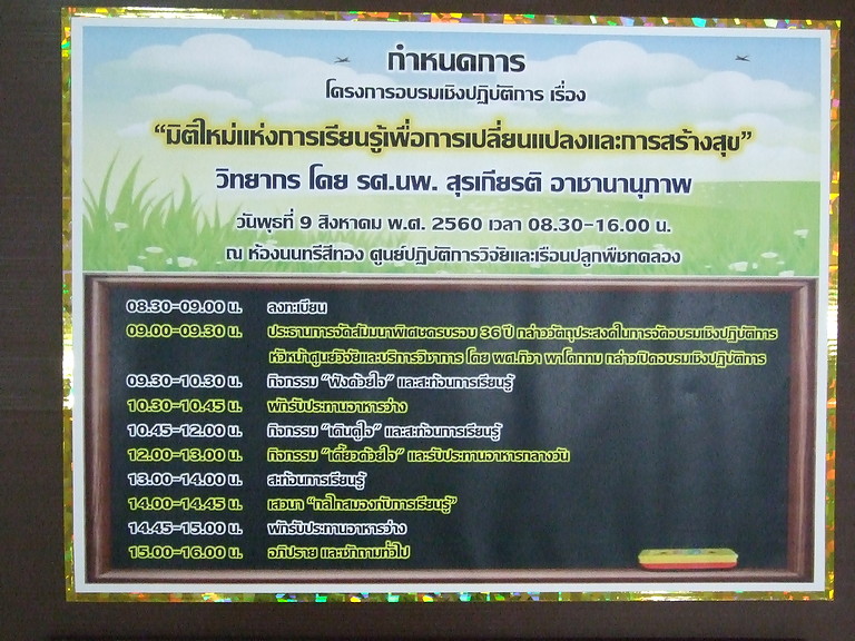 จัดฝึกอบรมเชิงปฏิบัติการ เรื่อง "มิติใหม่แห่งการเรียนรู้เพื่อการเปลี่ยนแปลงและการสร้างสุข"