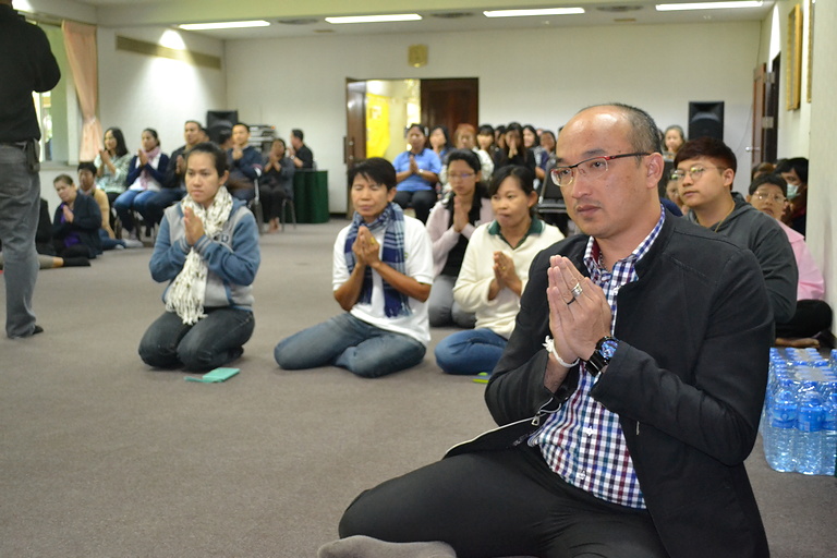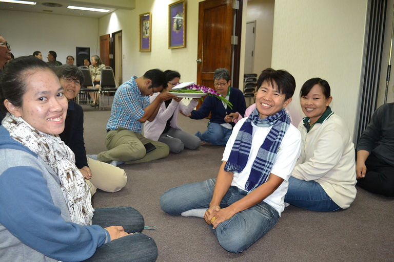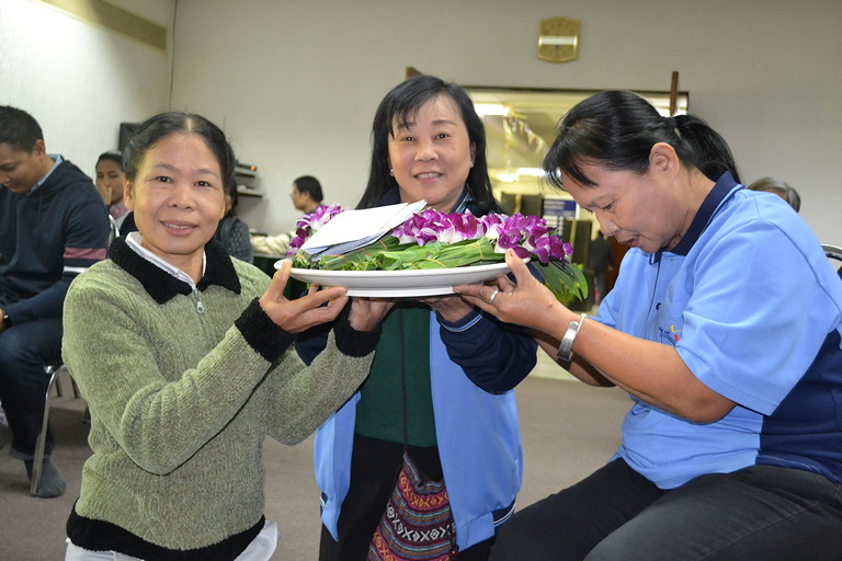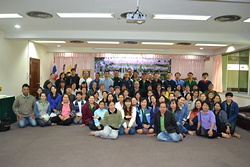 พระสงฆ์ 9 รูปเจริญพระพุทธมนต์และฉันภัตตาหารเพล ถ่ายรูปหมู่บุคลากร หัวหน้าศูนย์วิจัย
