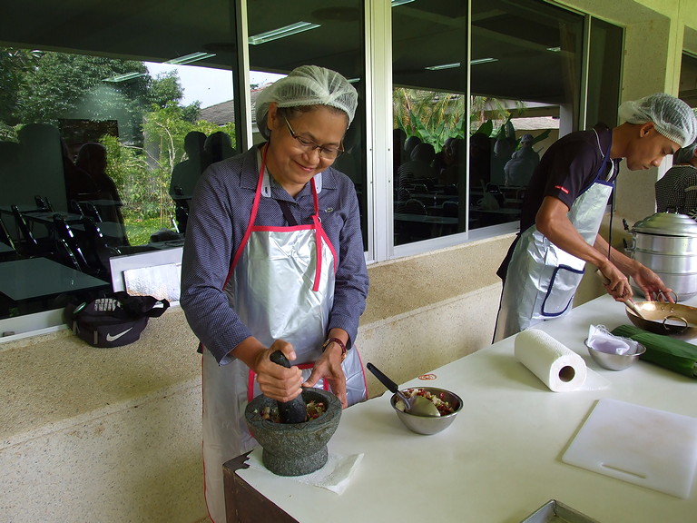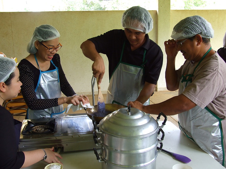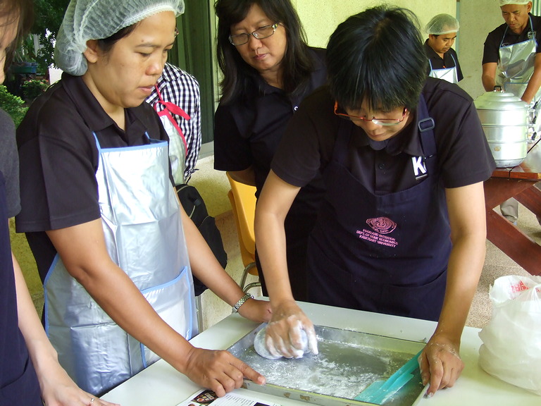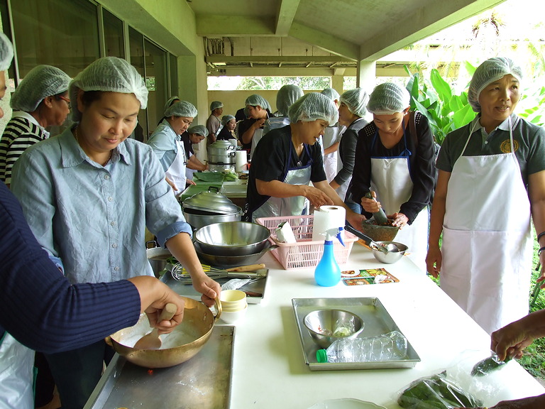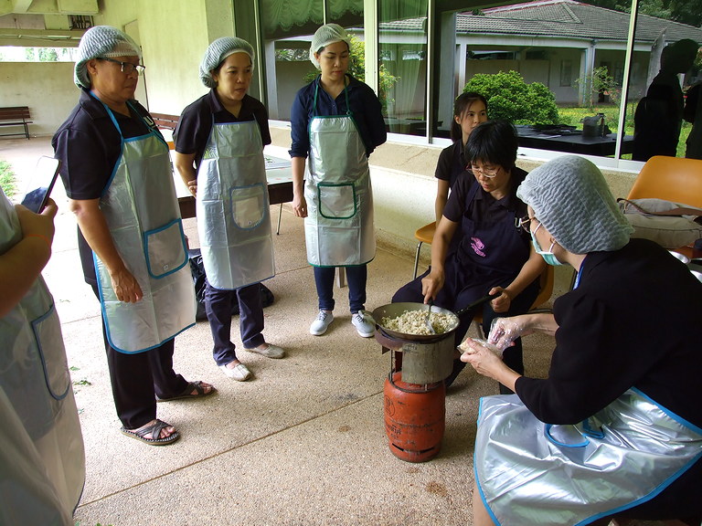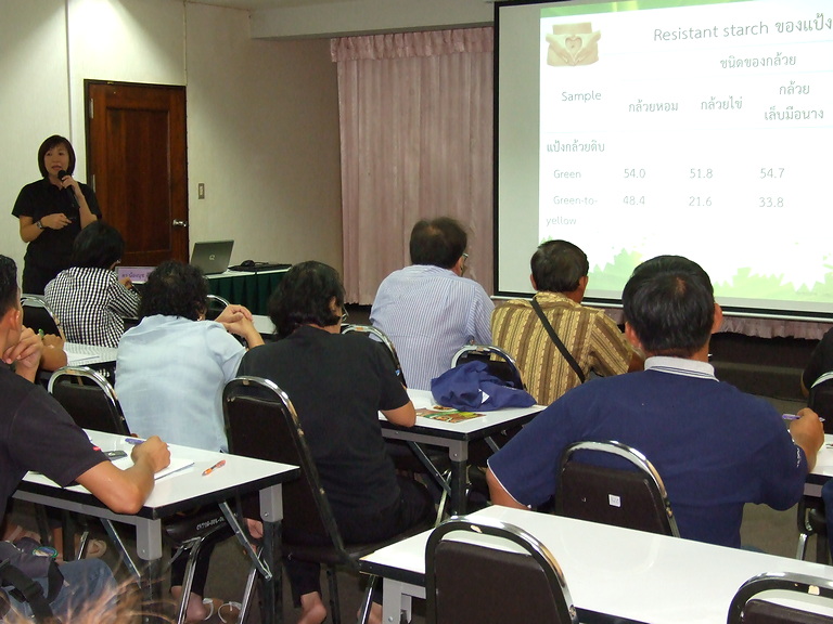 วันที่ 20 กันยายน 2560 ศูนย์ปฏิบัติการวิจัยและเรือนปลูกพืชทดลอง ศูนย์วิจัยและบริการวิชาการ คณะเกษตร กำแพงแสน จัดฝึกอบรมเรื่อง การแปรรูปผลผลิตกล้วย ภายใต้โครงการศูนย์กระจายพืชพันธุ์ดี มหาวิทยาลัยเกษตรศาสตร์ โดยมี ดร. น้องนุช ศิริวงศ์ อ. ทิพากร ม่วงทึก และนางสุนิสา ด้วงนุ่ม ทีมวิทยากรจากสาขาอาหารและโภชนาศาสตร์ ภาควิชาคหกรรมศาสตร์ คณะเกษตร มหาวิทยาลัยเกษตรศาสตร์ ณ ศูนย์ปฏิบัติการวิจัยและเรือนปลูกพืชทดลอง มีผู้เข้ารับการอบรม 66 คน |
