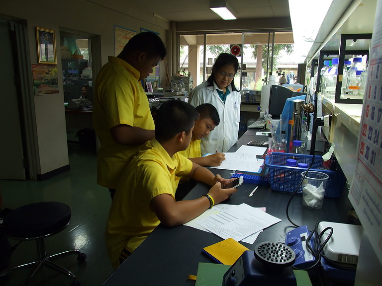 โรงเรียนหนองเสือวิทยาคม จ. ปทุมธานี นำนักเรียนชั้นมัธยมศึกษาปีที่ 3/1 จำนวน 9 คน ศึกษาดูงานและฝึกปฏิบัติการ เรื่อง "การสกัดและวิเคราะห์กรดไขมันในน้ำมันพืชด้วยเทคนิค Gas Chromatography (GC)" ณ ศูนย์ปฏิบัติการวิจัย