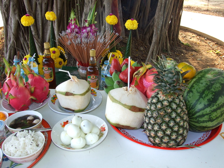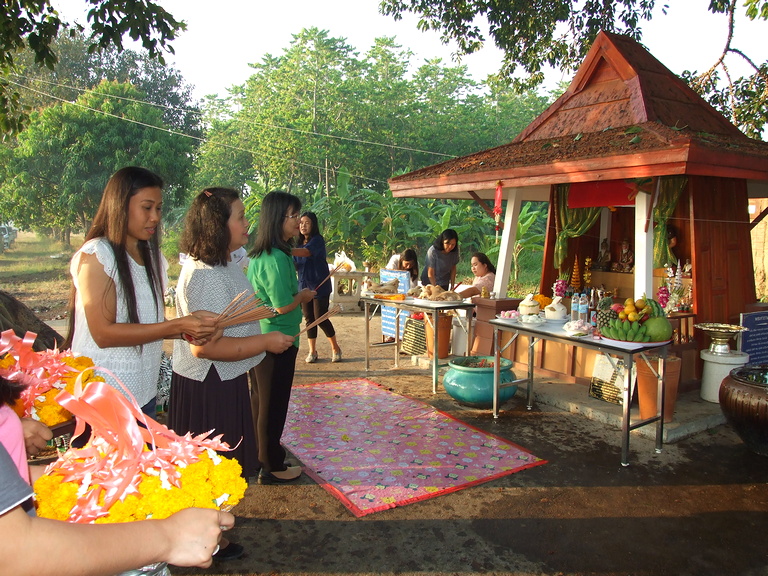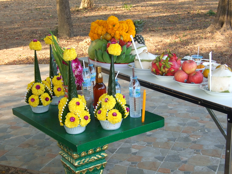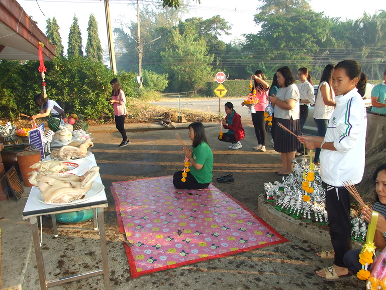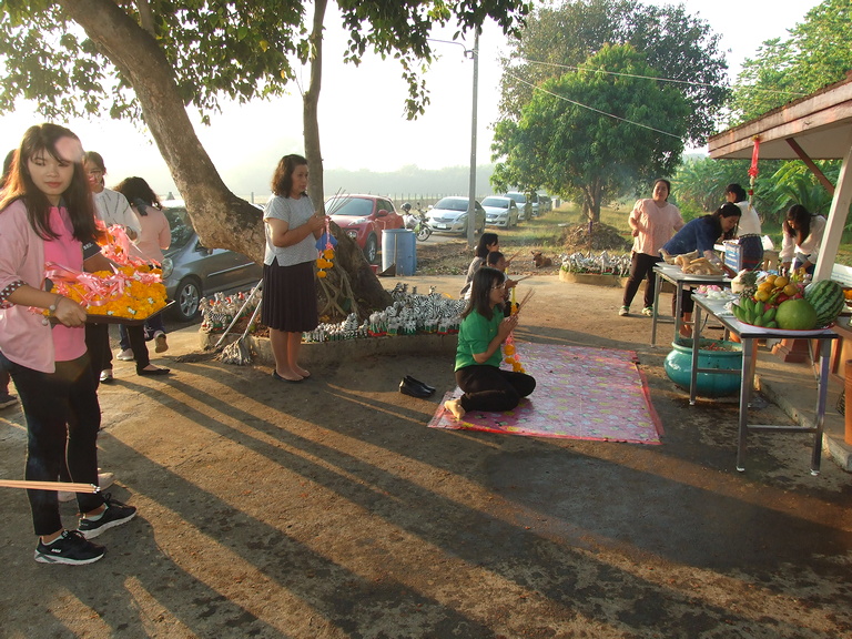 มีพิธีไหว้พระพิรุณ ไหว้ศาลพ่อปู่ ไหว้ท่านขุนตะนาวศรี พระสงฆ์เจริญพระพุทธมนต์ ฉันภัตตาหารเพล